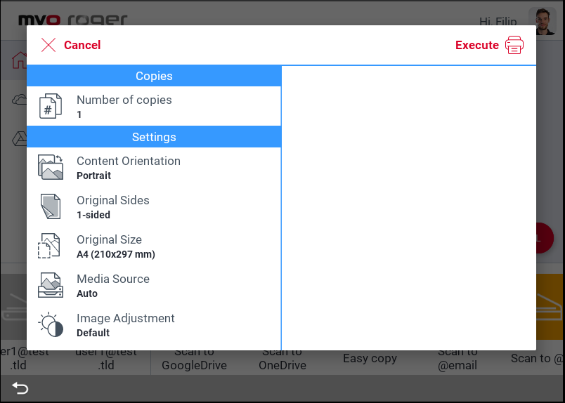 Abhängig von den Einstellungen Ihres MyQ Roger-Mandanten und den Einstellungen des Administrators sind folgende Aktionen möglich: